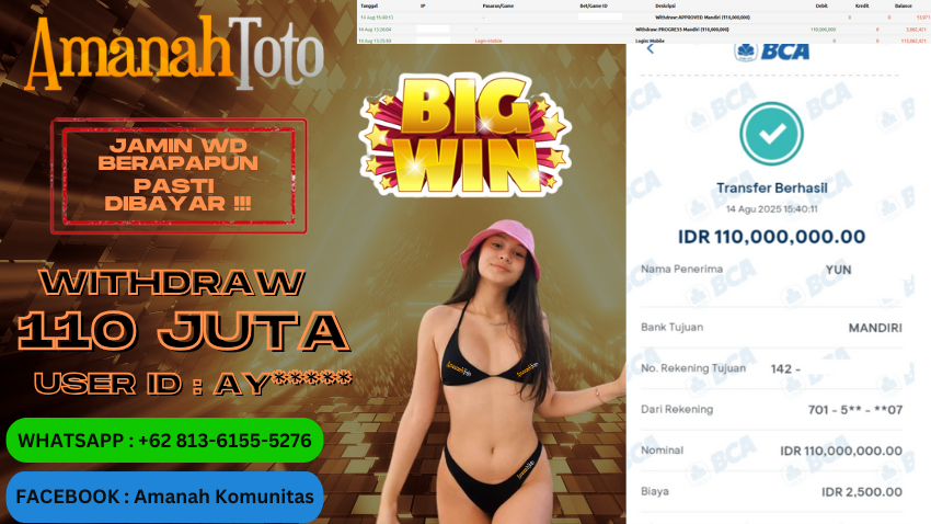 Amanahtoto – Adalah Agen judi online terpercaya dan pastinya gacor yang telah membuktikan kemenangan member lewat bukti jeckpot. Dengan bukti jeckpot setiap player dapat mengetahui bahwa situs Amanahtoto memiliki tingkat kualitas terbaik dari kemenangan di game dan dijamin aman terpercaya untuk player yang ingin mencoba merasakan kemenangan dalam permainan judi online di Indonesia.