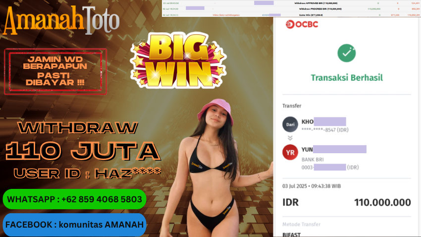 Amanahtoto – Adalah Agen judi online terpercaya dan pastinya gacor yang telah membuktikan kemenangan member lewat bukti jeckpot. Dengan bukti jeckpot setiap player dapat mengetahui bahwa situs Amanahtoto memiliki tingkat kualitas terbaik dari kemenangan di game dan dijamin aman terpercaya untuk player yang ingin mencoba merasakan kemenangan dalam permainan judi online di Indonesia.
