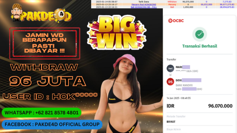 PAKDE4D JACKPOT DI PERMAINAN HONGKONG RP. 96.070.000,- LUNAS