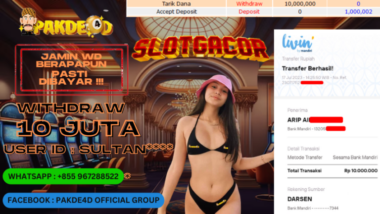 PAKDE4D JACKPOT DI PERMAINAN SLOT RP. 10.000.000 LUNAS