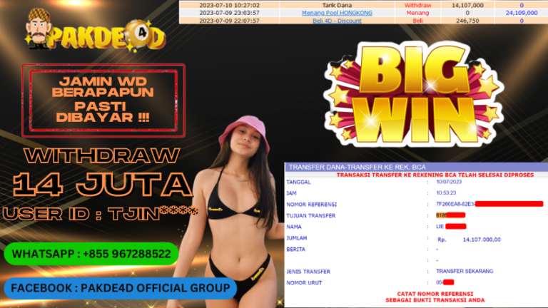 PAKDE4D – Situs Bandar Togel Online, Live Casino dan Slot Online Terpercaya yang terbukti membayar berapapun kemenangan Anda. Jika Anda masih mencari Situs Bandar Terpercaya, jangan ragu untuk bergabung bersama PAKDE4D. Dalam 1 akun Anda bisa menikmati semua permainan yang disediakan dengan minimal deposit hanya Rp. 10.000,- melalui transaksi Bank Lokal Indonesia dan Dompet Digital…